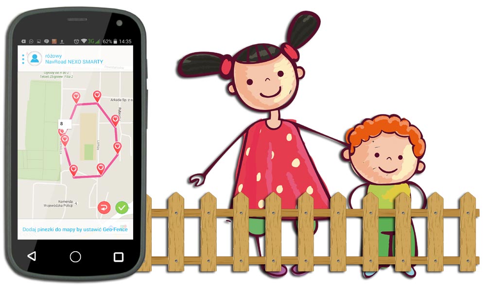 Dzięki geolokalizacji zawsze wiemy gdzie dziecko się znajduje i gdzie było. Natomiast dzięki funkcji GEOFENCE ("wirtualne ogrodzenie") możemy wyznaczyć strefę, w której dziecko może bezpiecznie przebywać np. plac zabaw, szkoła. W momencie wyjścia dziecka poza dozwolony obszar, zostaniemy o tym natychmiast powiadomieni.