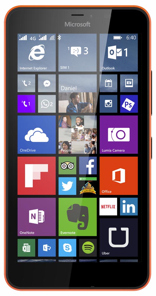 Lumia 640 to smartfon 5 calowy z dwoma kamerami o rozdzielczości 0.9 i 8 megapikseli, wyposażony w akumulator 2500 mAh. Ten model będzie dostępny w wersji 3G z dwoma slotami SIM oraz wersji z łącznością 4G LTE z jednym i dwoma slotami SIM. Wymiary produktu to 141.3 x 72.2 x 8.85 mm, waga 145 gram.