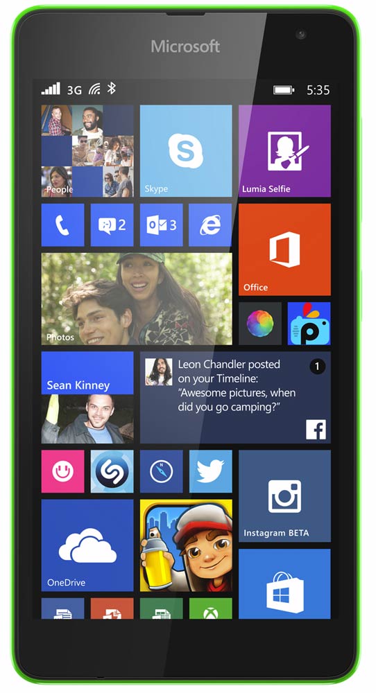 Model 535 to pierwsza Lumia z logo Microsoftu zamiast Nokii. Smartfon posiada 5 calowy ekran IPS (540 x 960 pikseli) chroniony przez bardzo wytrzymałe szkło Gorilla Glass 3. Z przodu i z tyłu urządzenia znajdziemy 5 megapikselowe kamery. Produkt będzie dostępny w sześciu kolorach i dwóch wersjach - z jednym i dwoma slotami SIM.