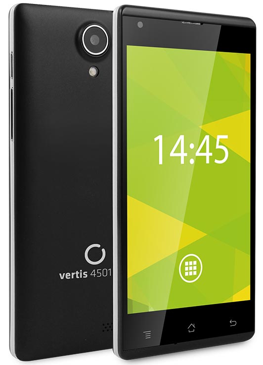 Vertis 4501 You to pod względem rozmiaru średni model, otrzymał 4.5 calowy ekran o rozdzielczości 480 x 854 pikseli oraz dwurdzeniowy procesor MediaTek MT6572M (1 GHz). Tu przednia kamera ma 1.3 megapiksela, tylna bez zmian 5 mpx. Także w tym modelu akumulator ma 2000 mAh i także otrzymamy dodatkową baterię (2000 mAh).