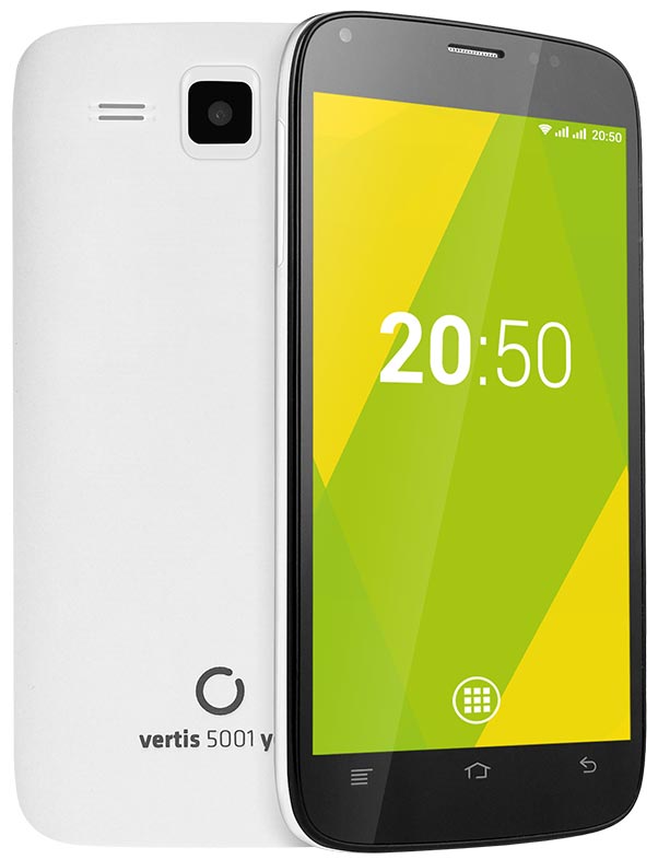 Vertis 5001 You to największy z nowych smartfonów, posiada 5 calowy ekran o rozdzielczości 480 x 854 pikseli oraz dwurdzeniowy procesor MediaTek MT8312 taktowany na 1.2 GHz. W tym modelu przednia kamera ma jakość VGA, tylna 5 megapikseli. Akumulator ma pojemność 2000 mAh. W zestawie znajdziemy także dodatkową baterie.