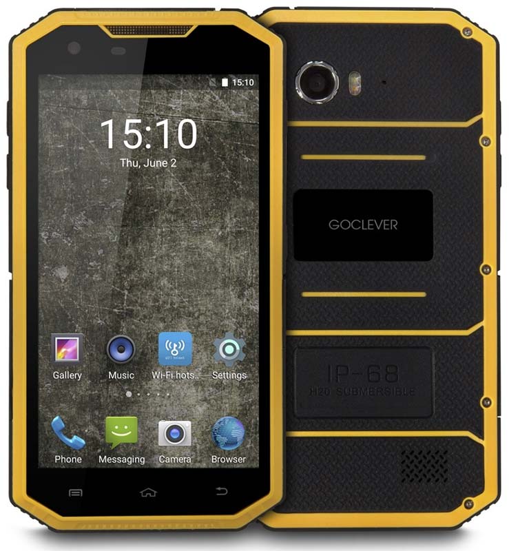 QUANTUM 5 500 RUGGED to kolejny nowy telefon firmy Goclever z serii tzw. "pancernych smartfonów". Produkt posiada 5 calowy ekran IPS o rozdzielczości HD, czterordzeniowy procesor MediaTek MT6735 oraz 1 GB RAM i 16 GB pamięci wewnętrznej. Telefon jest odporny na ciężkie warunki atmosferyczne, spełnia warunki normy IP68, jest wodoodporny i pyłoodporny, może być stale zanurzony w wodzie, a także odporny na wstrząsy i upadki.
